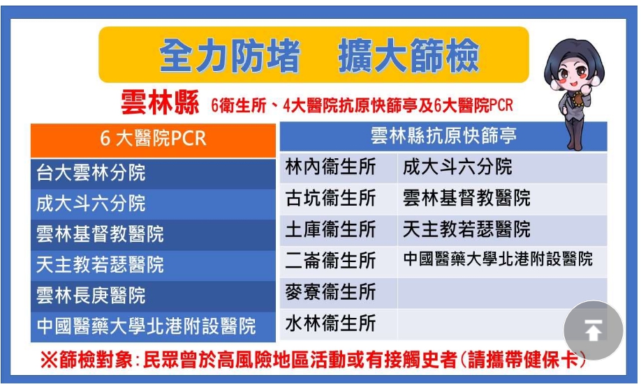 2.如欲自行出門前往醫院採檢須經由衛生單位安排。