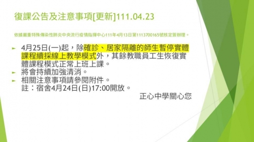 本校防疫措施 - 復課公告及注意事項 [更新]111.04.23