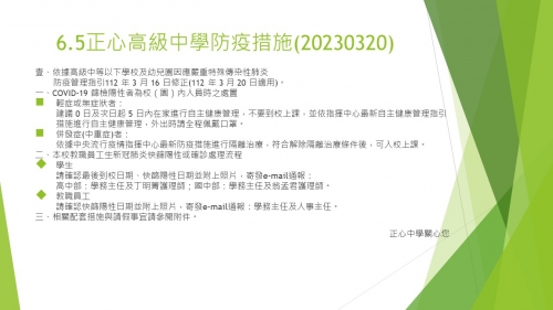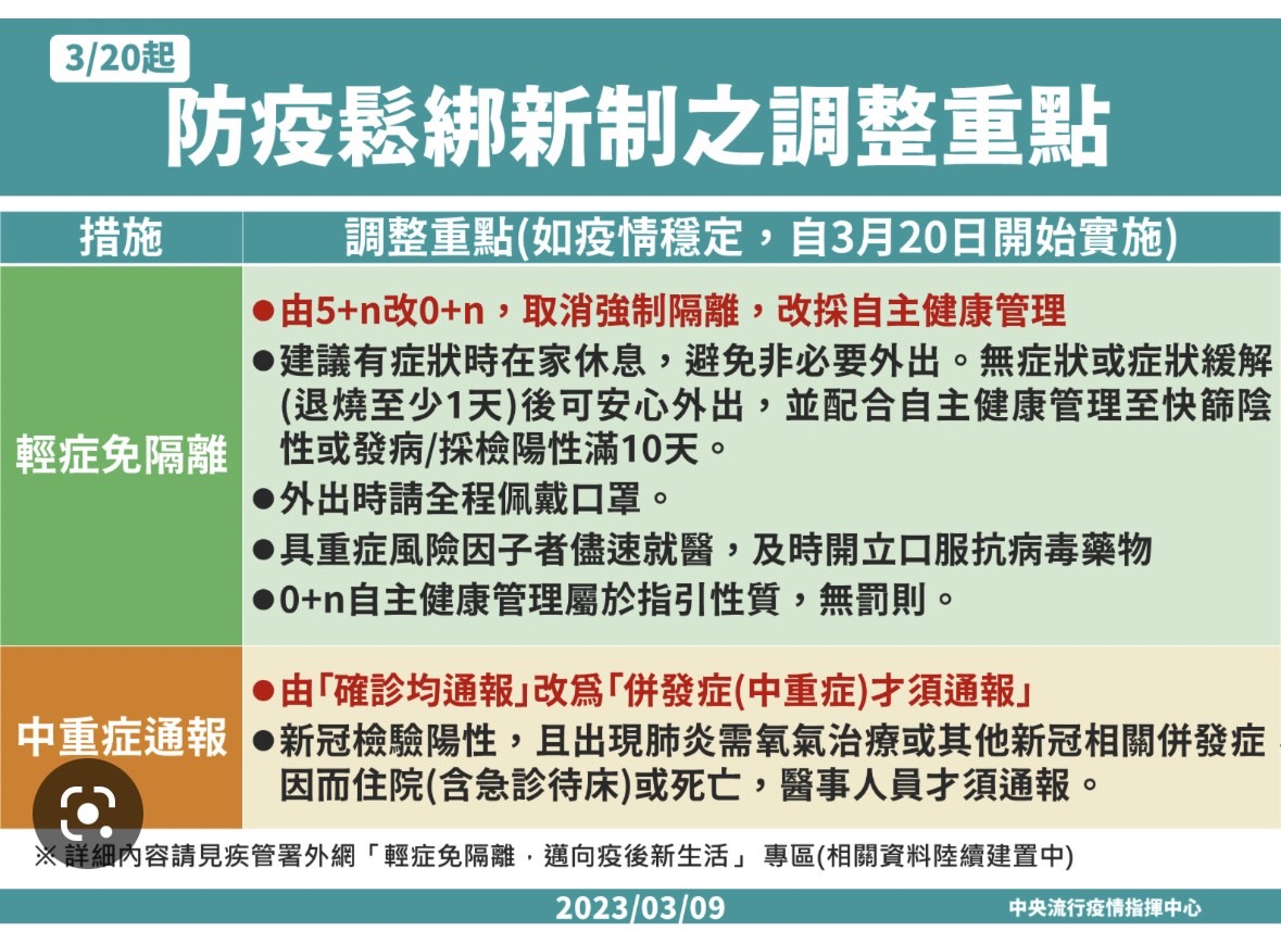 防疫管理指引112 年 3 月 16 日修正(112 年 3 月 20 日適用)。