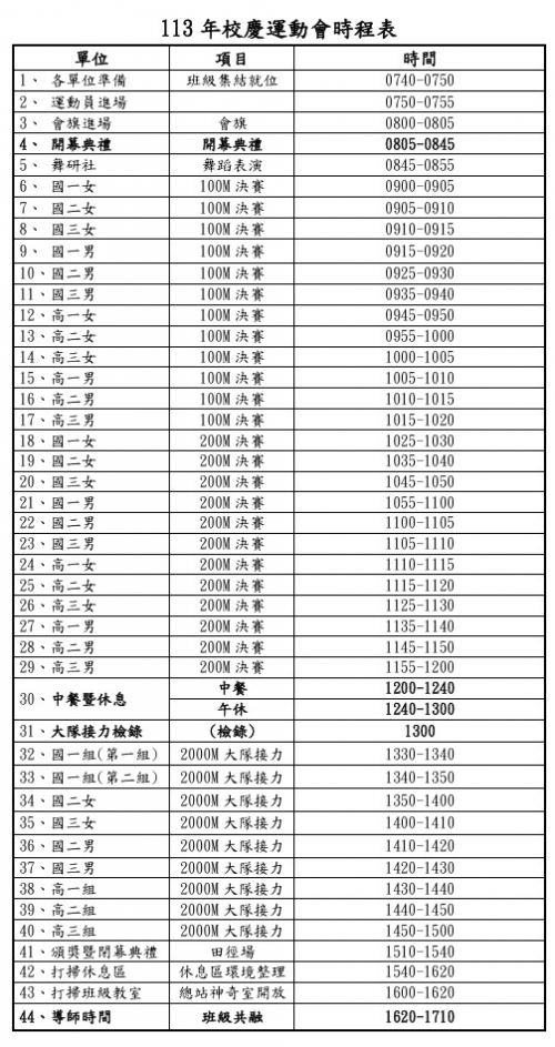 【體育組】113學年12月6日(五)運動會流程及配合注意事項