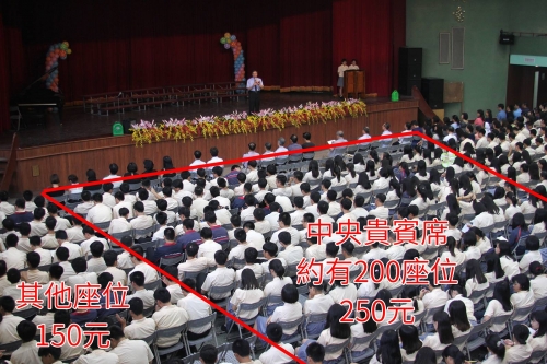 - 票價:學生150元,貴賓席250元。(貴賓席的位置在中間前面,當日優先進場,坐滿為止)