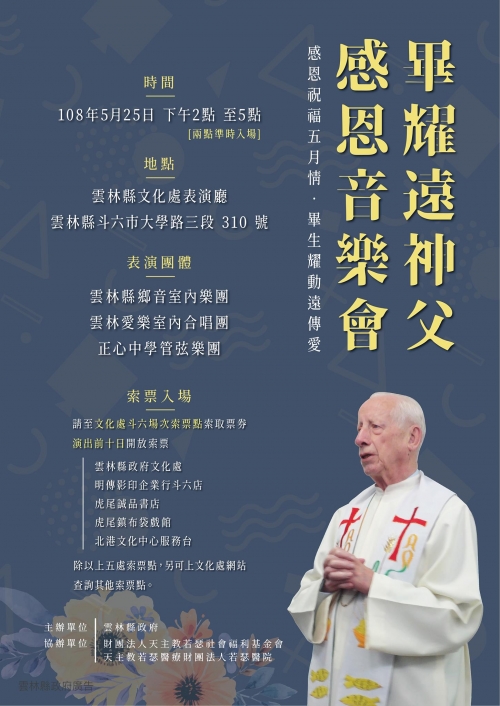 畢耀遠神父感恩音樂會5/25(六)14:00-17:00雲林縣文化處表演廳