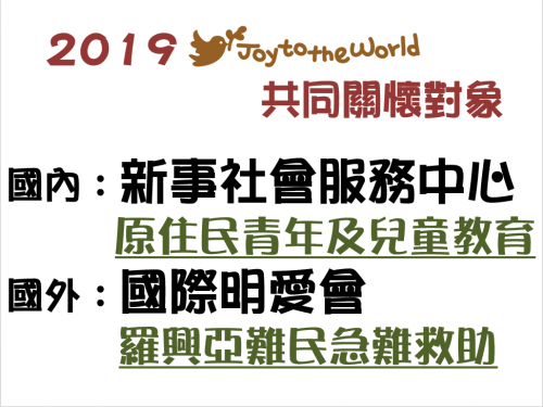 新事社會服務中心(原住民青年培育及輔導)、國際明愛會(直接救助羅興亞難民營)