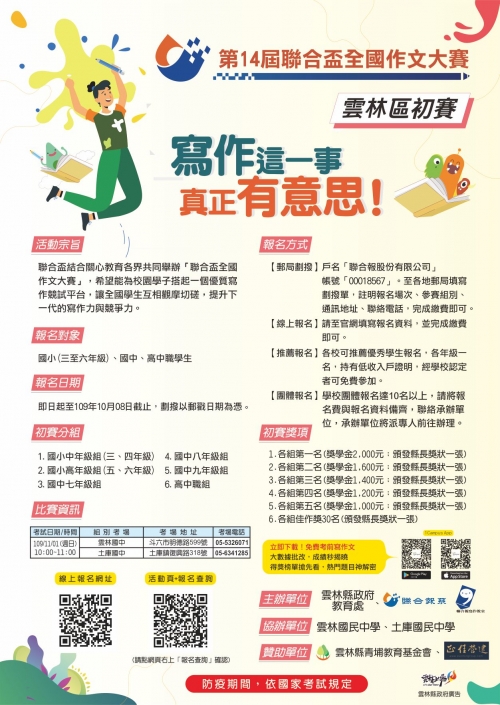 2020第14屆聯合盃作文大賽雲林區初賽校內團報