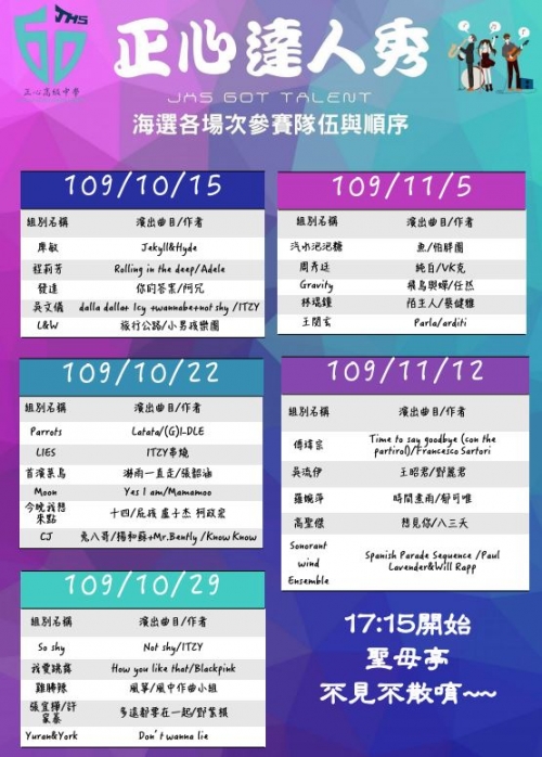 「正心達人秀」海選各場次參賽隊伍與順序(詳海報內容)