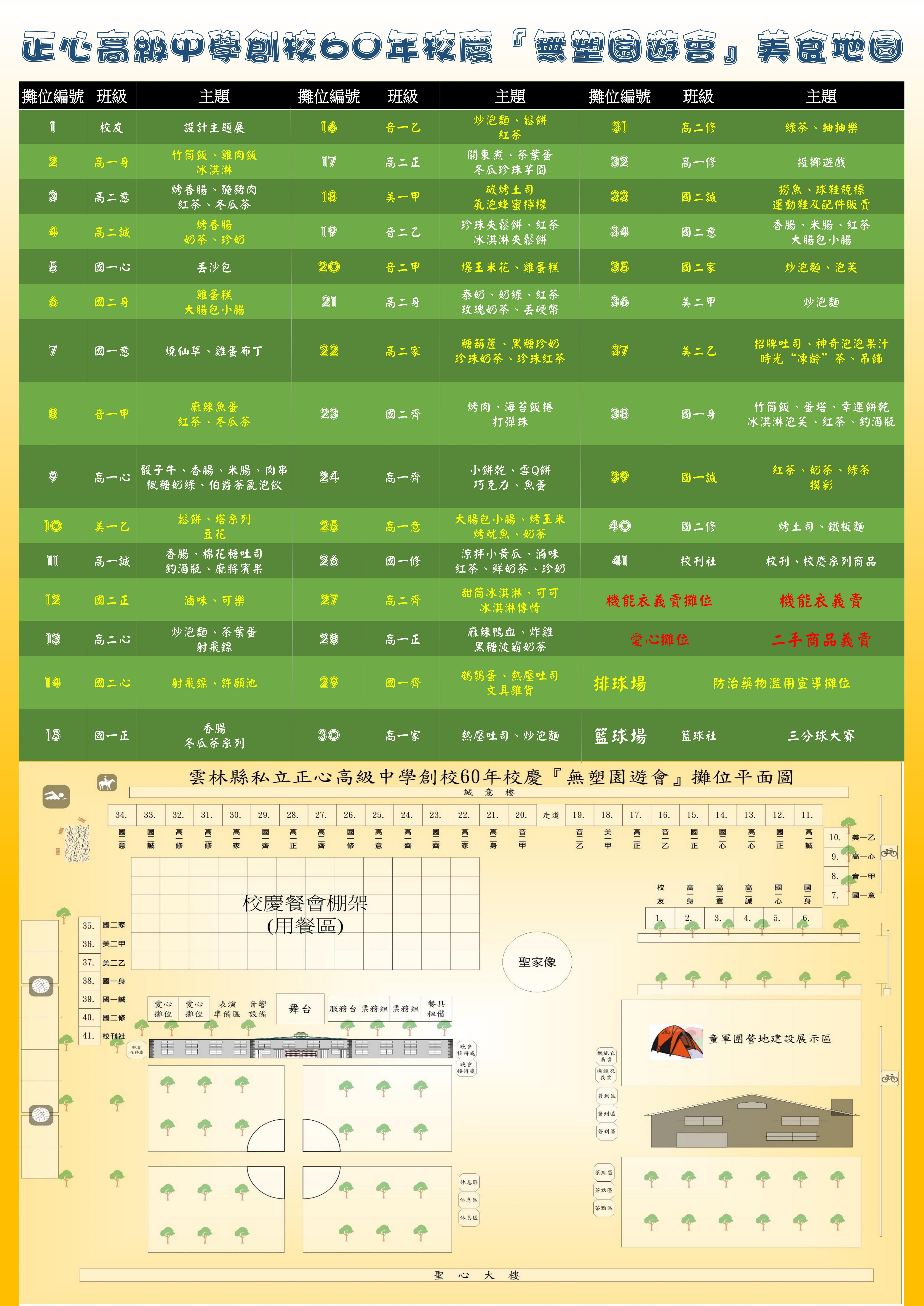 04 12 月 【60年校慶】"無塑園遊會"美食地圖 By 林柏亨 正心校內大小事 0 回應s 12月5日上午9時至12時 歡迎大家來正心逛逛, 本次園遊會為"無塑園遊會", 記得自備環保餐具喔! 置頂截止日期: 2020-12-05附件檔案: 美食地圖.pdf 美食地圖1205大版.jpg 瀏覽次數:2268