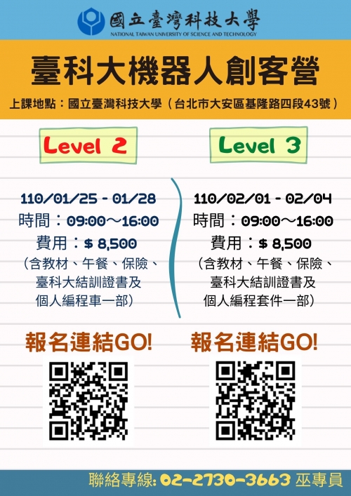 二、課程查詢請至臺科大推廣教育中心官網(http://www.cec.ntust.edu.tw/)及附上報名網址:https://forms.gle/NF49gVrX9B1T7fmV9及https://forms.gle/oRKDKLHqvWVb6FQR8。